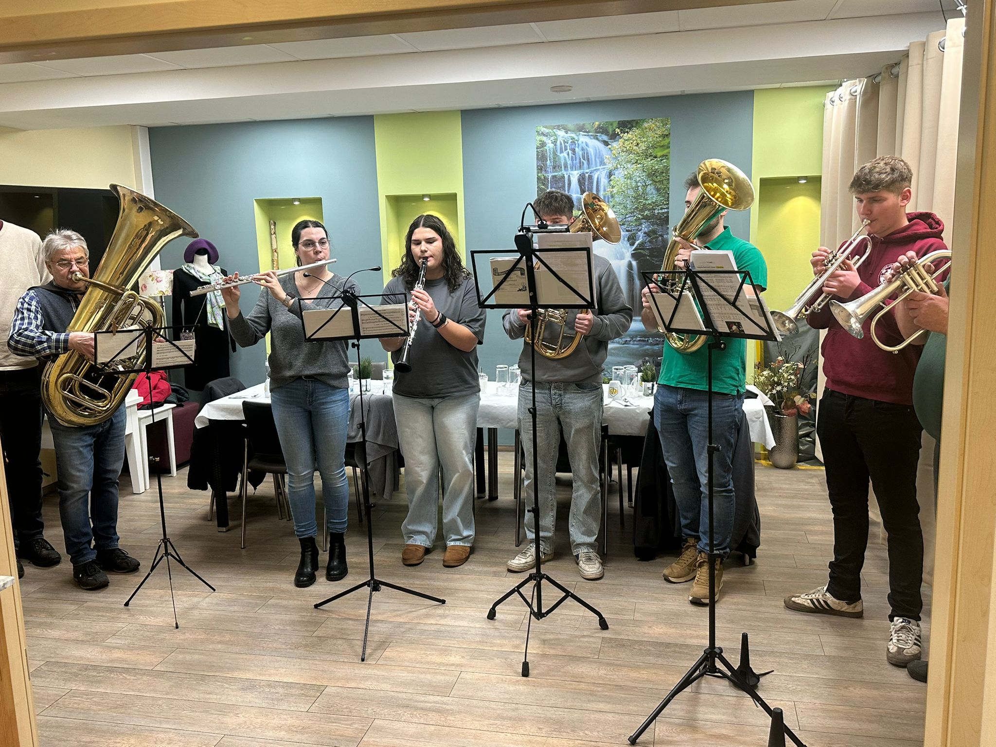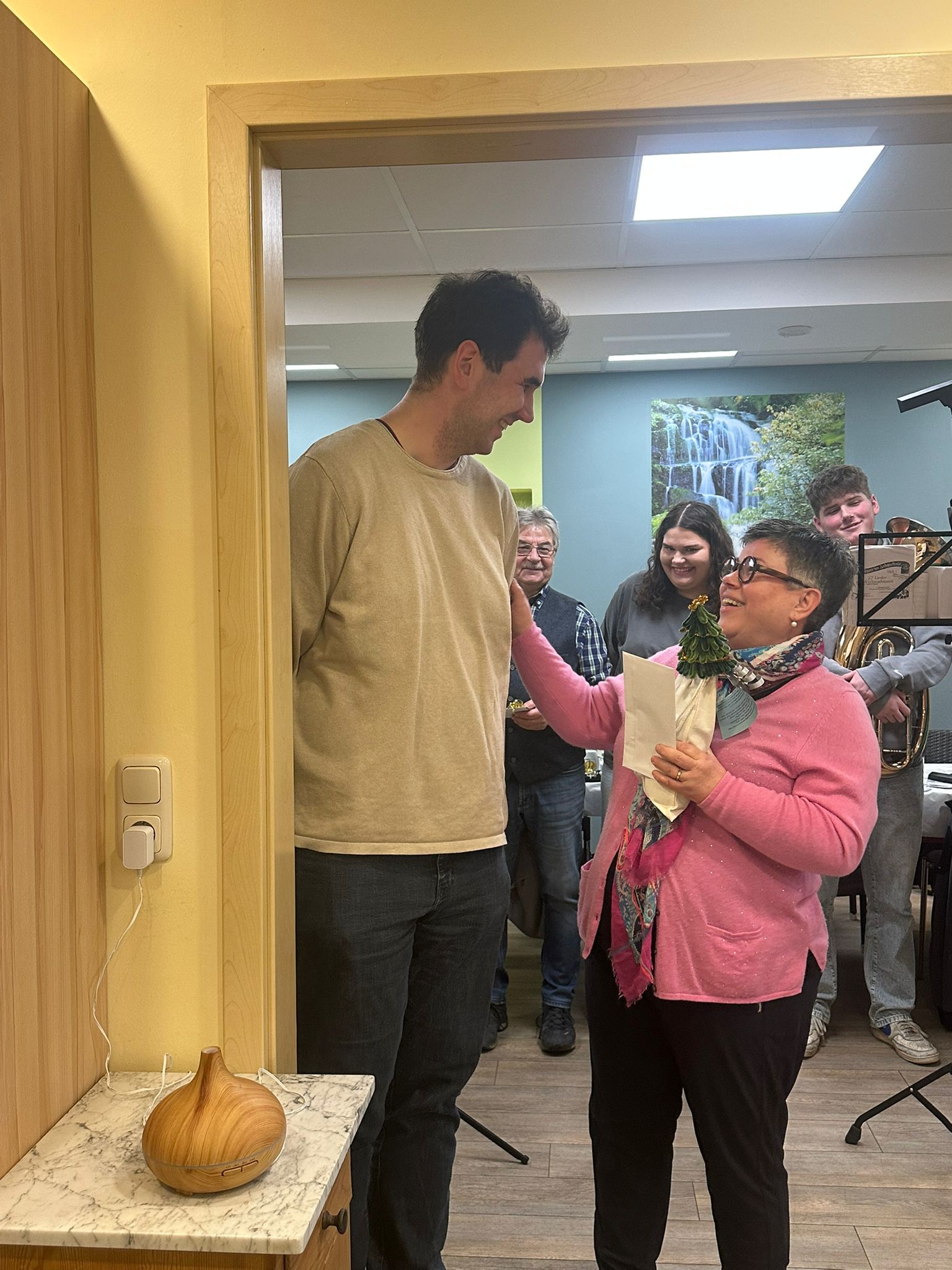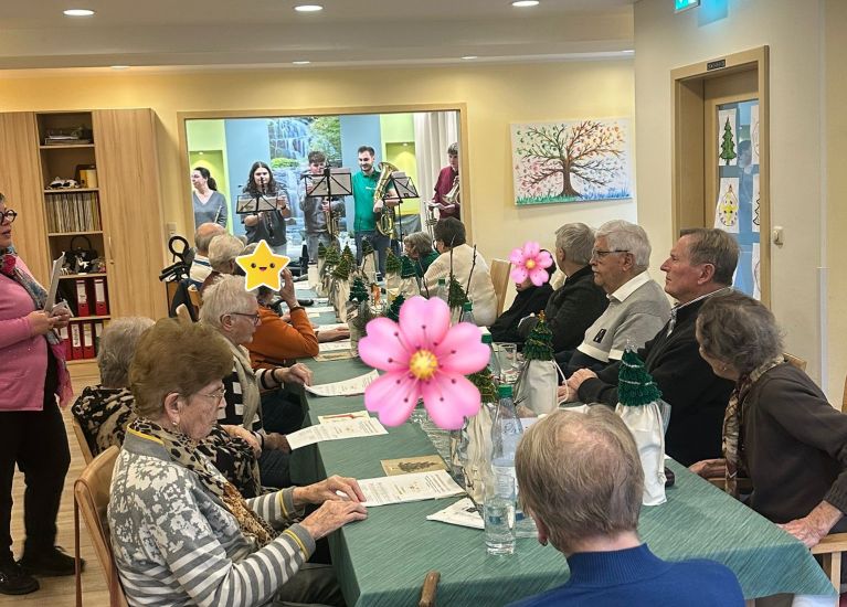 Am Vormittag gab es eine tolle Geschichte von unserem Rudi und zum Mittagessen schwarzen Sauerbraten mit Blaukraut und Semmelkloß. Am Nachmittag waren unter den geladenen Gästen, Pater Haagen, Pfarrer Johannes Brunner, Diakon Wolfgang Fehn und Musiker der Haacher Volksmusikanten. Unser 1.Bürgermeiser Daniel Weißerth musste sich leider kurzfristig entschuldigen. Eine schöne Weihnachtsgeschichte aus dem Lukas Evangelium, sowie die Geschichte "Laternen des Herzens" gehörten u.a. zum Programm. Umrahmt wurde das ganze mit den schönsten Weihnachtslieder von den Haacher Musikanten, wobei unsere Senioren kräftig mitgesungen haben. Das wohl schönste Weihnachtslied "Stille Nacht" bei abgedunkelter Atmosphäre durfte natürlich nicht fehlen. Unsere Chefin hat jedem unserer Senioren persönlich ein kleines Weihnachtsgeschenk überreicht.