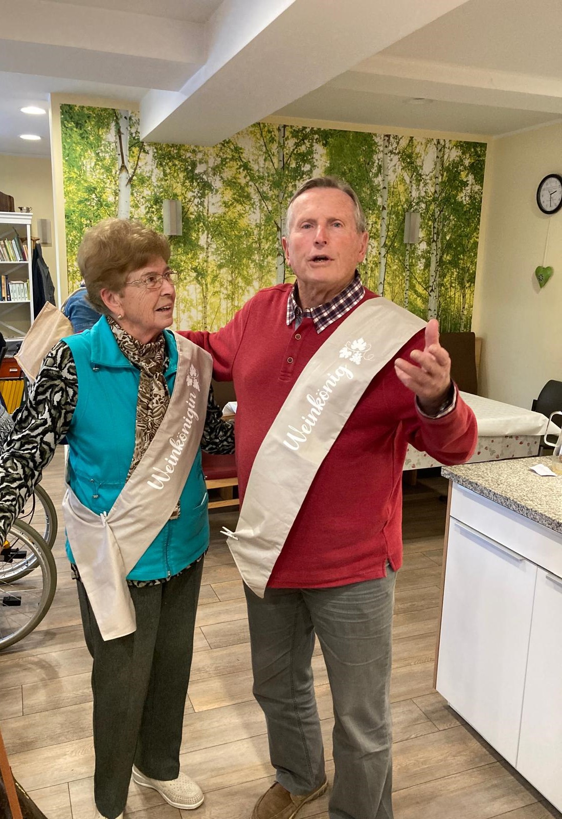 Letzten Freitag feierten wir unser Weinfest in unserer Tagespflege. Es gab einen Videovortrag über Wein, zum Mittagessen Blaua Zipfel mit Meerrettich und Brot, am Nachmittag Musik mit Regina die zum Mitsingen und Mitschunkeln einlud🥳🪗, Krönung von unserer Weinkönigin Johanna die Erste und Weinkönig Hilmar der Erste🫅🏼🤴🏼 und anschließend leckeren Obatzter mit Knabbereien. 🍇🍷🙂